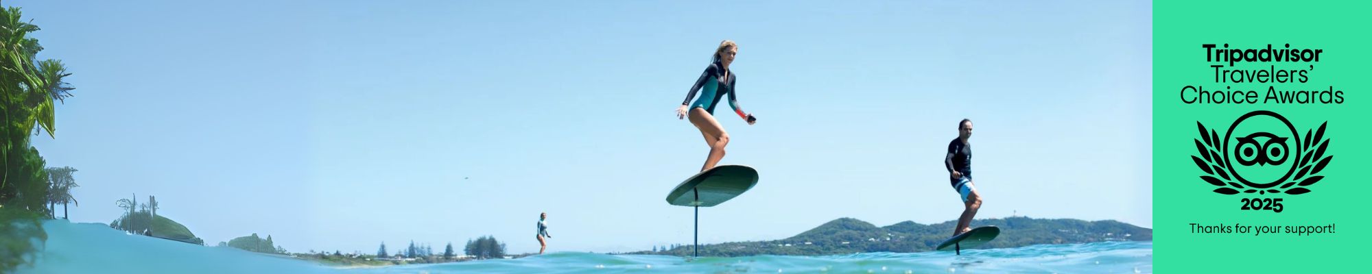 Your first eFoil lesson starts on the beach, where your eFoil instructor explains the remote control, board setup, and basic safety. Then you’ll go into the water and practice lying down and standing up while riding slowly on the board. As you gain control, you’ll learn how to gently lift the board out of the water and start flying—an unforgettable feeling!